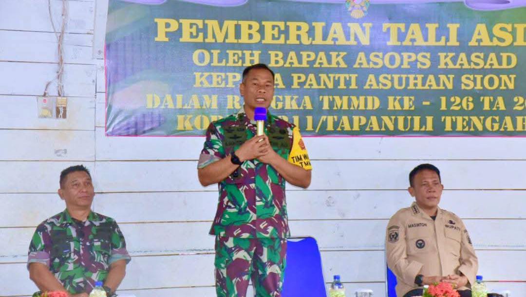 Kegiatan ini dirangkai dengan penyerahan Tali Kasih oleh Asops Kasad, Pgs Danrem 023 KS, Bupati Tapteng, Dandim 0211 TT kepada anak-anak Panti Asuhan Sion serta bernyanyi bersama anak-anak Panti Asuhan Sion tersebut.