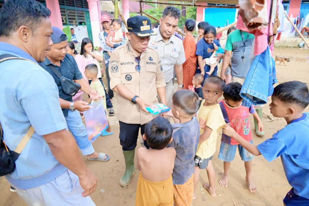 WartaNusantara||TAPTENG – Bupati Tapanuli Tengah (Tapteng) Masinton Pasaribu, SH, MH, mengunjungi Pengungsi bertempat di SD Negeri 152984 Kelurahan Sipange Kecamatan Tukka, Senin (8/12/25).