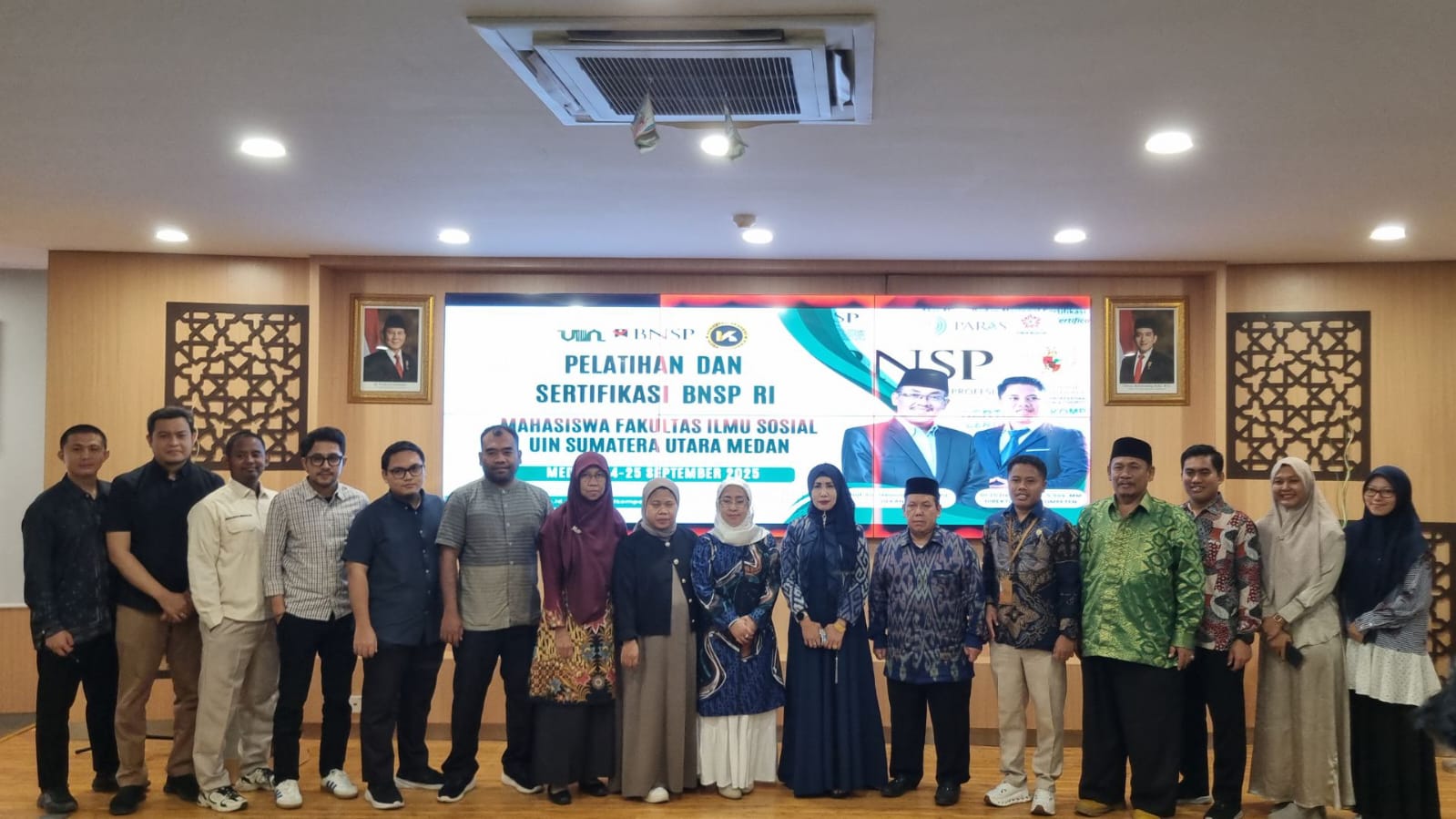 Program berlangsung dalam dua tahap, yakni Pelatihan Kompetensi pada 25–26 September 2025 dan Asesmen Sertifikasi pada 3 dan 8 Oktober 2025, bertempat di Aula Fakultas Ilmu Sosial, Kampus IV UINSU Tuntungan, Jl. Lapangan Golf No. 120, Desa Durin Jangak, Medan.