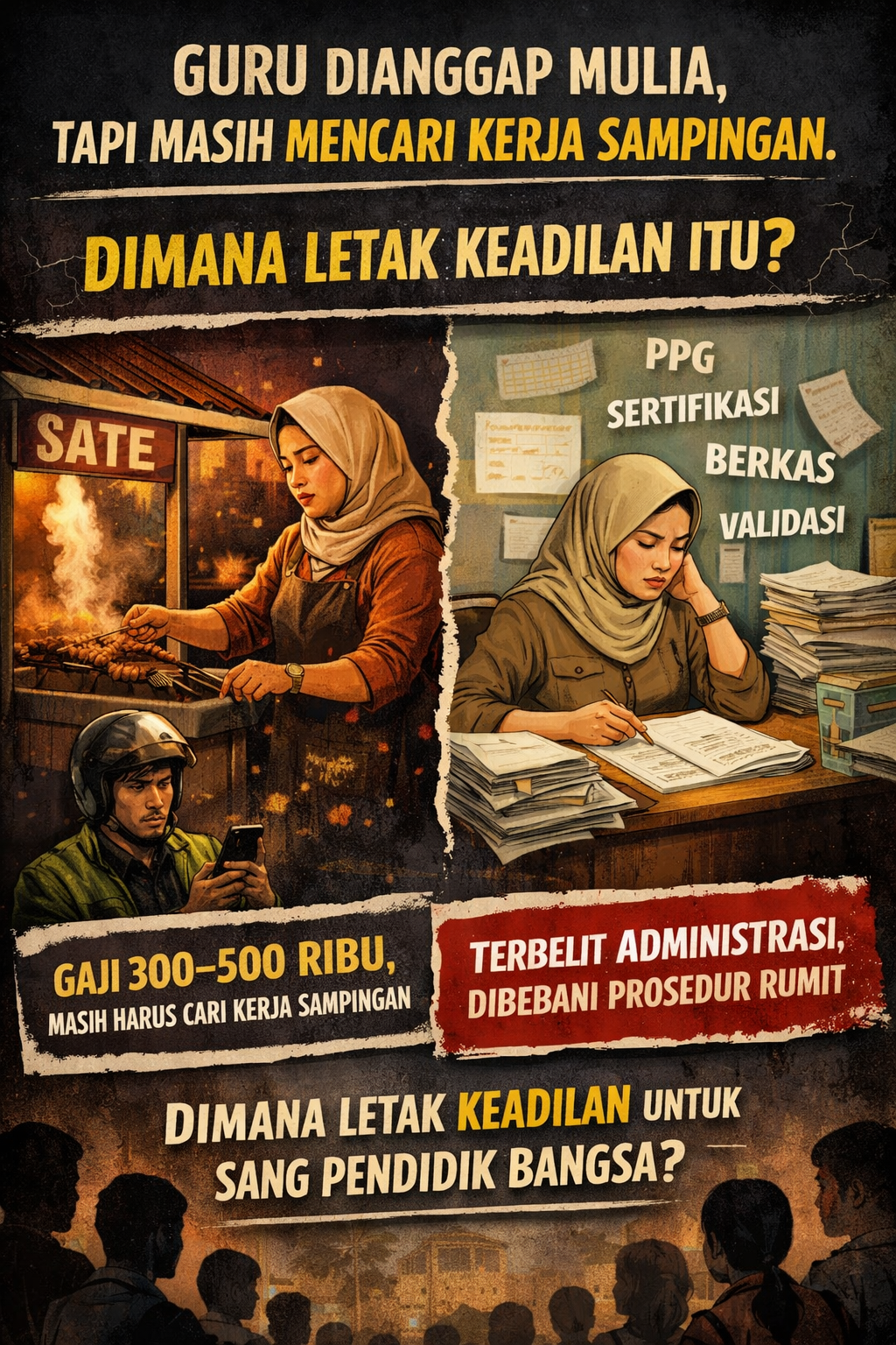 Karena itulah banyak guru terpaksa mencari kerja sampingan. Bukan karena tidak mencintai profesinya. Bukan karena tidak profesional. Tetapi karena kebutuhan hidup tidak bisa ditunda.