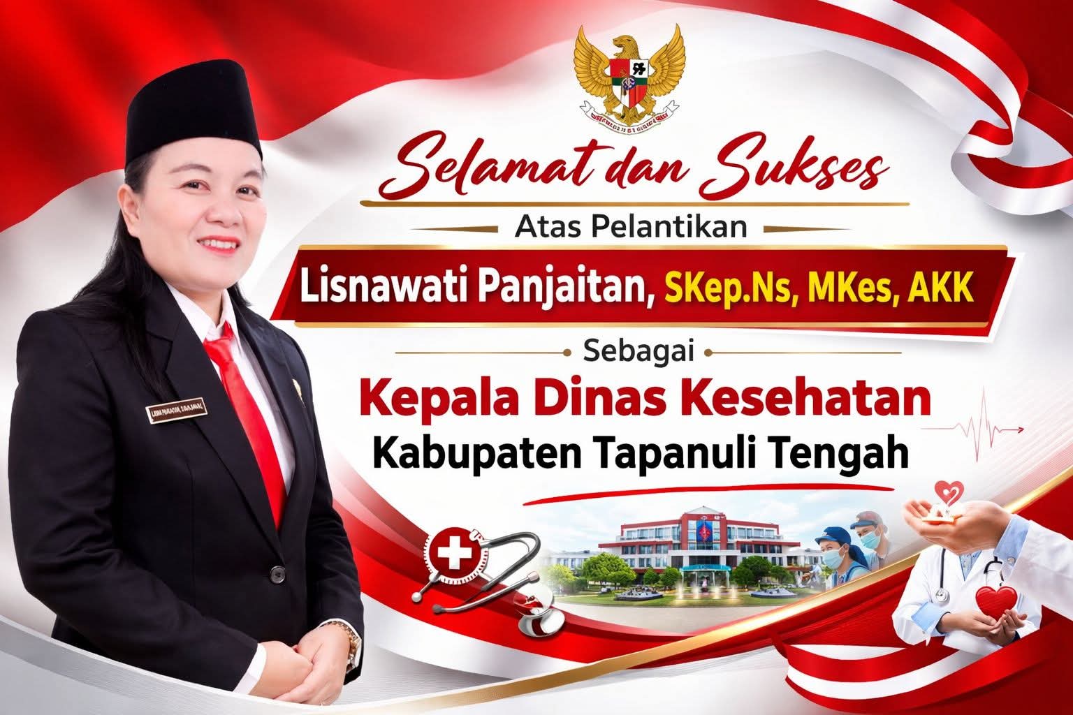 Wartanusantara||Tapanuli Tengah – Lisnawati Panjaitan, SKep.Ns, MKes, AKK resmi menjabat sebagai Kepala Dinas Kesehatan Kabupaten Tapanuli Tengah setelah menjalani proses pelantikan yang dilakukan langsung oleh Bupati dan Wakil Bupati Tapanuli Tengah pada acara resmi yang diadakan di Gedung Kantor Bupati Kabupaten Tapanuli Tengah.