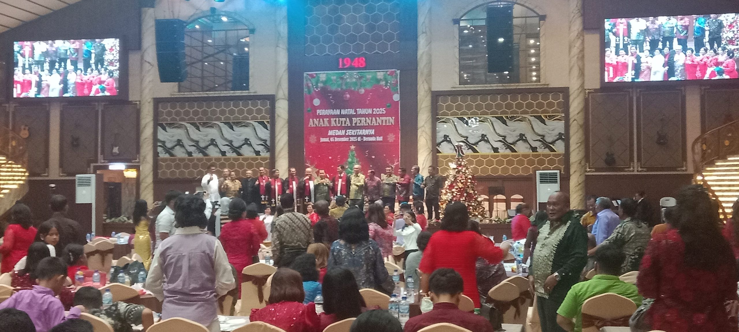 Warta Nusantara | Medan — Perayaan Natal Tahun 2025 Persadan Anak Kuta Pernantin Medan dan sekitarnya berlangsung meriah dan penuh kegembiraan.