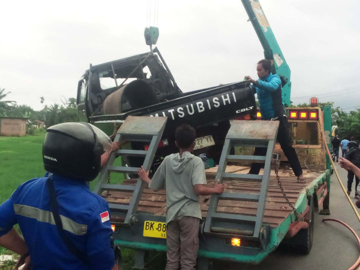 Pickup L300 Terjun Bebas ke Sawah di Desa Baru, Pengemudi Luka Ringan