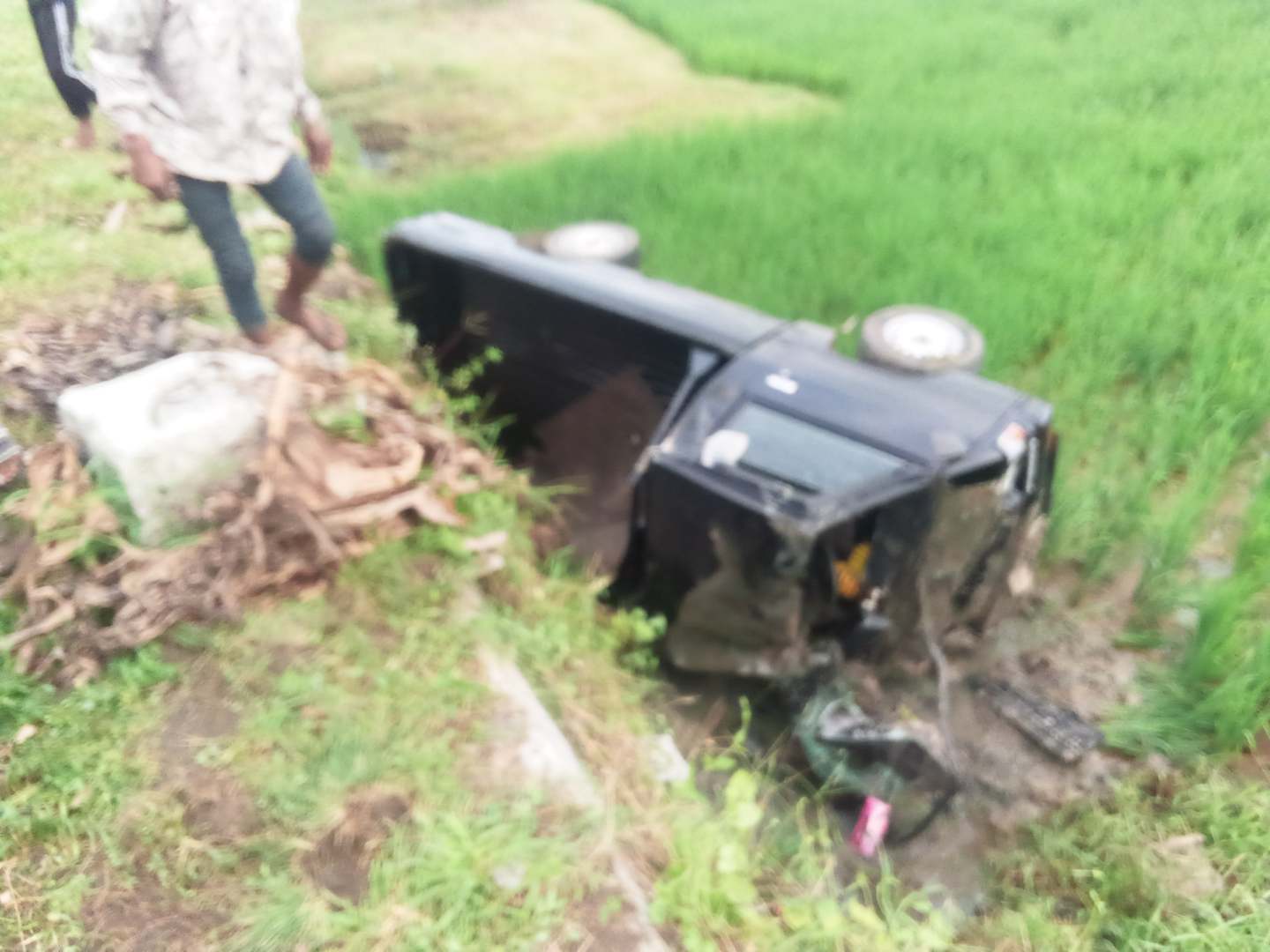 Pickup L300 Terjun Bebas ke Sawah di Desa Baru, Pengemudi Luka Ringan