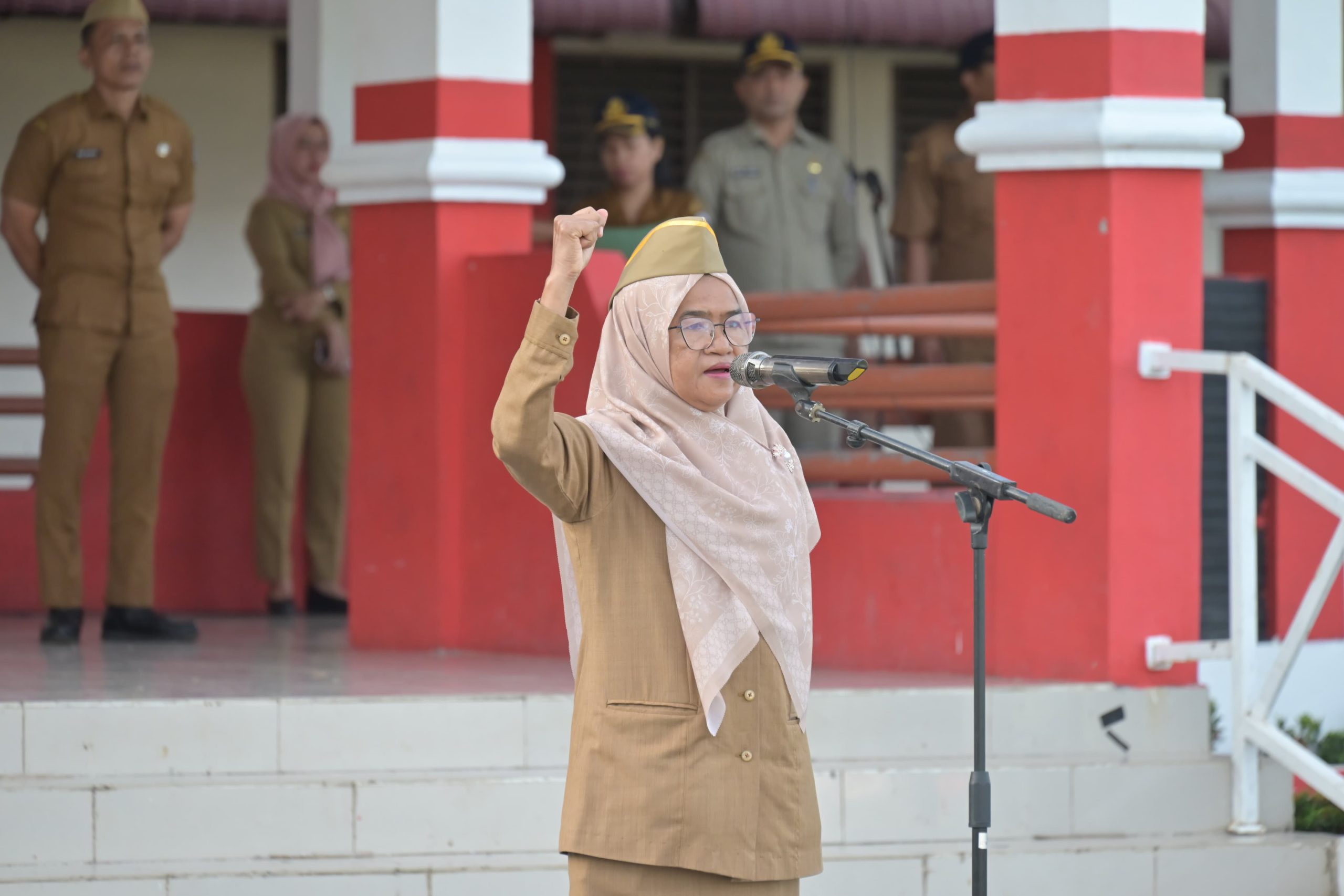 WartaNusantara||PANDAN – Plh. Sekretaris Daerah Kabupaten (Sekdakab) Tapanuli Tengah Dra. Nurjalilah bertindak selaku Pembina Upacara Apel Pagi Gabungan ASN.di Lingkungan Pemerintah Kabupaten Tapanuli Tengah (Tapteng) yang digelar di Lapangan GOR Pandan, Senin (06/10/2025).