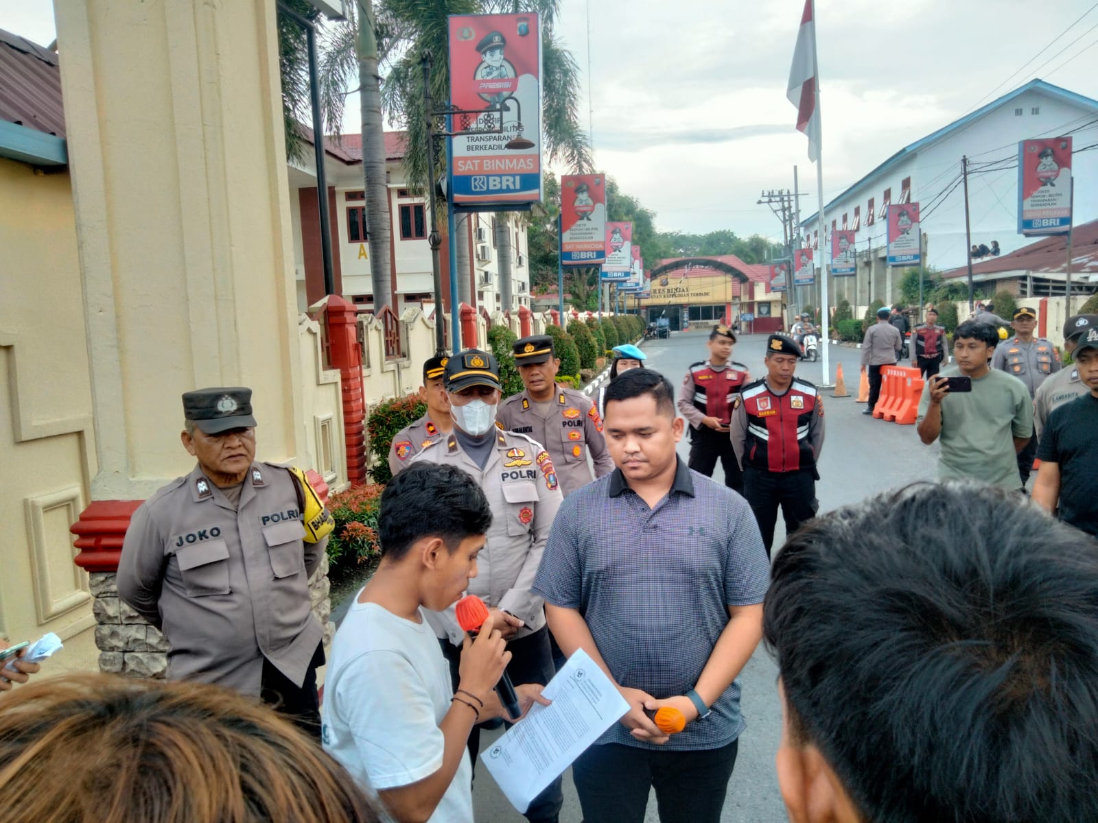 Pimpinan aksi, Tappul R, menegaskan bahwa menuntut Kapolres Binjai untuk berani mengambil langkah tegas.