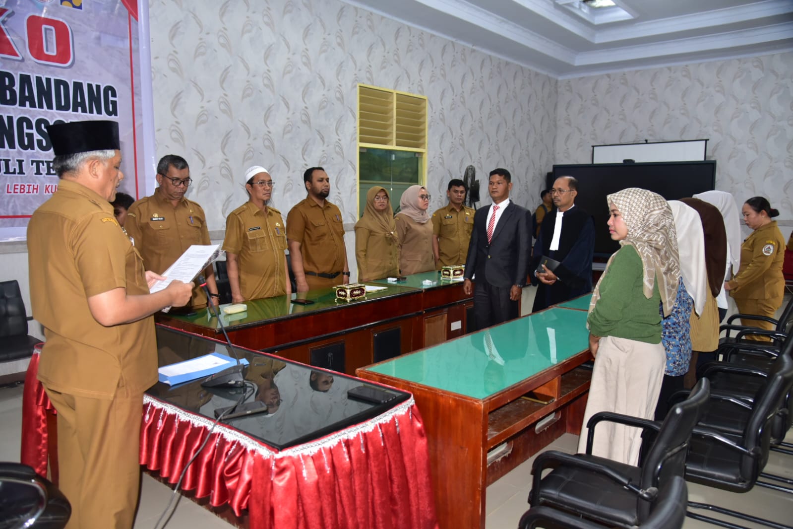 Turut hadir pada pelantikan ini, para Staf Ahli Bupati, para Asisten Setdakab Tapteng, Pimpinan OPD Kabupaten Tapteng, Rohaniawan, dan saksi-saksi.