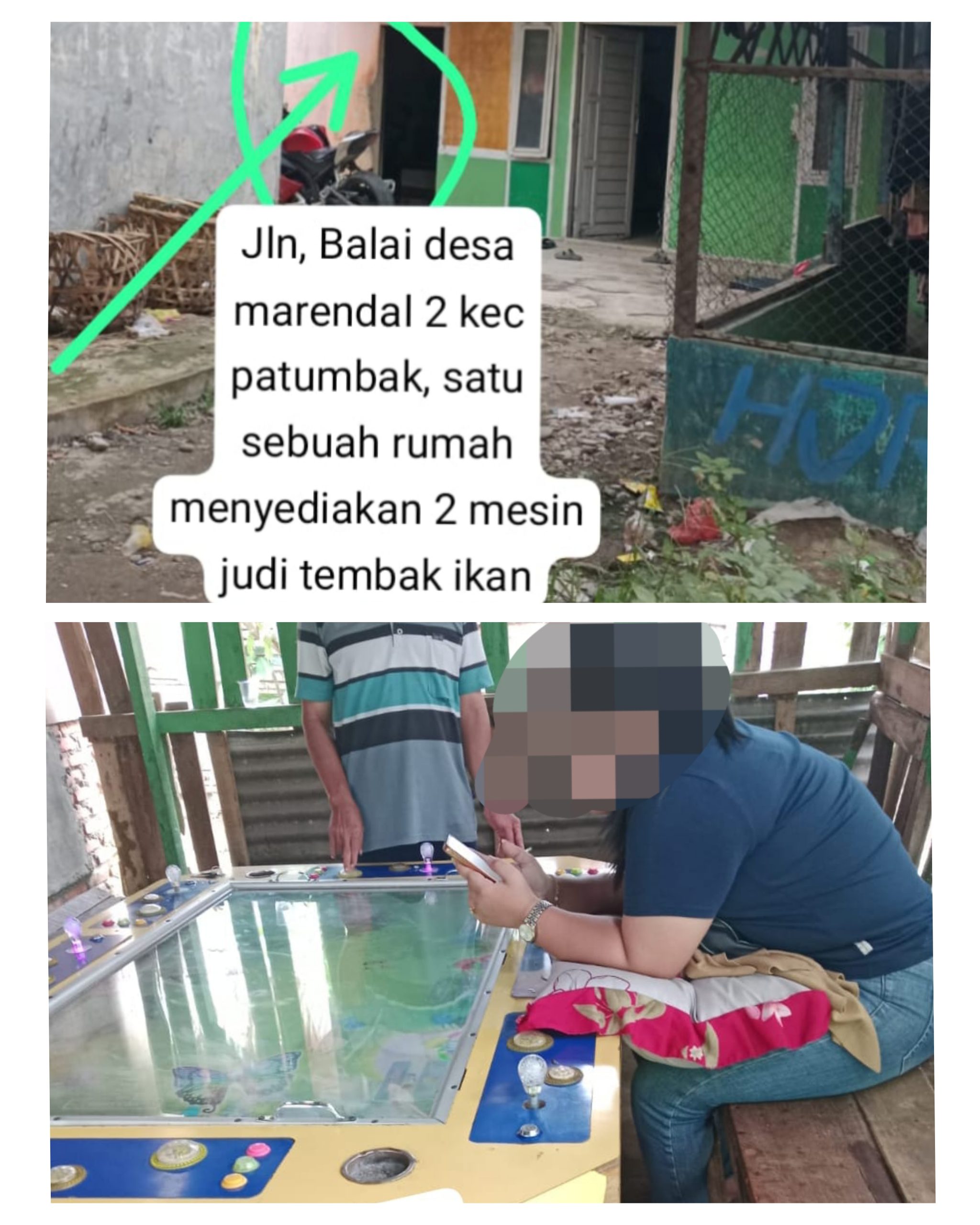 Lokasi Pertama di Jalan Balai Desa Marendal 2 Kec Patumbak terlihat di sebuah rumah Menyediakan Tempat 2 mesin modus ketangkasan tembak ikan.